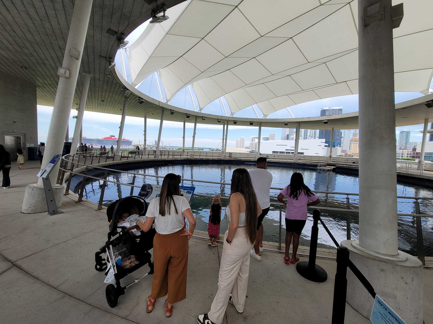 But I was especially charmed by the sort of architecture that you build when you know it’s never going to be cold outside - openings and “windows” with no glass pane, just open to the natural air, all the time. This was the upper floor of the Frost Science Museum - shielded from the rain, but not the air. (Note also the giant cruise ship in background.)